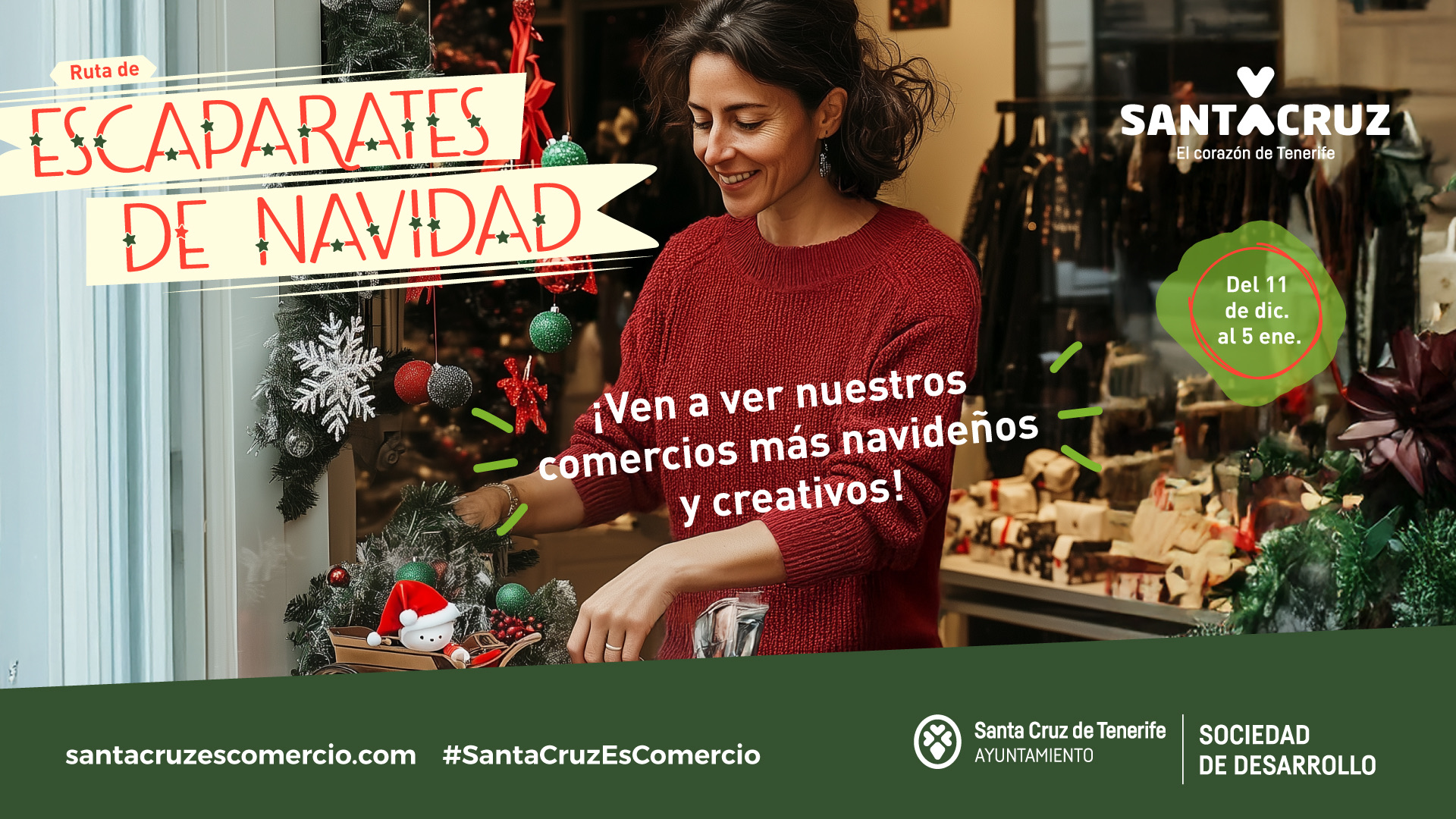 El Ayuntamiento de Santa Cruz de Tenerife, a través de la Sociedad de Desarrollo, cerrará el período de inscripciones para participar en la Ruta de Escaparates de Navidad este sábado a las 14:00 horas. Así lo ha comunicado el alcalde del municipio, José Manuel Bermúdez, quien ha señalado que “con este proyecto pretendemos poner en valor el esfuerzo y la dedicación del tejido comercial del municipio que engalana sus escaparates durante la campaña de Navidad y Reyes y potenciar la promoción del pequeño y mediano comercio en estas fechas tan señaladas”.